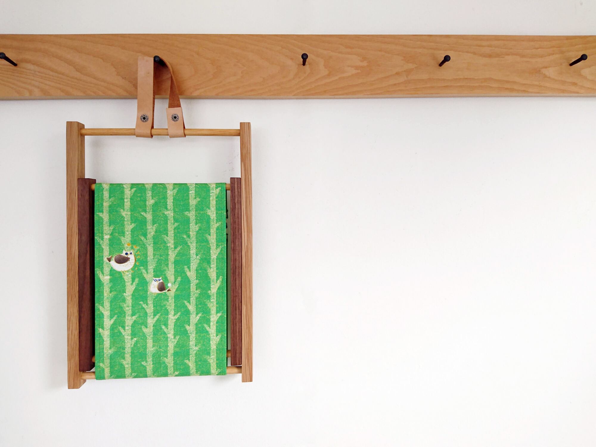 ぺージをおさえる革のブックキーパーは、木のフレームにはめこまれ、スムースにめくることができます。また、読みかけをそのまま置いておけます。
